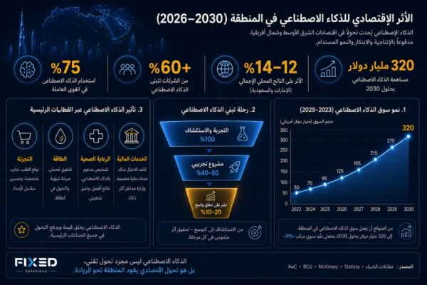 فيكسد سوليوشنز: الذكاء الاصطناعي يضيف 320 مليار دولار لاقتصادات الشرق الأوسط وشمال أفريقيا بحلول 2030 ويقود تحولًا اقتصاديًا غير مسبوق