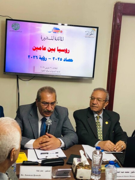في إطار مناقشة أبرز ما جاء في استعراض العام مع فلاديمير بوتين لعام 2025 وهو لقاء سنوي يعقدة الرئيس بوتين مع الصحفيين والمواطنين الروس، يحمله في طياته دلالات مهمة على مختلف الأصعدة، نظم مركز الحوار للدراسات السياسية والإعلامية، بالتعاون مع المؤسسة المصرية الروسية للثقافة والعلوم ومركز الدراسات الاستراتيجية والتنبؤ السياسي(روسيا)، المائدة المستديرة بعنوان “روسيا بين عامين (حصاد 2025 – رؤية 2026)”. وجاءت الفعالية بهدف تحليل مضامين اللقاء السنوي للرئيس الروسي الذي عُقد في19 ديسمبر 2025، والذي استعرض خلاله أبرز إنجازات العام على المستويين الداخلي والخارجي، إلى جانب ملامح الرؤية الروسية لعام 2026.
