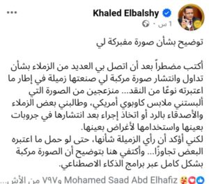 “البلشي” يرد علي ترند الصور: “الصور صنعت بالـ AI ورأي الزميلة وشأنها “