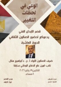 “غداً”: لواء دكتور “إبراهيم هلال” ضيف قصر الإبداع الفني بـ 6 أكتوبر ..